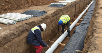 5. Засыпка траншей: после укладки труб траншеи засыпаются песком или грунтом.
