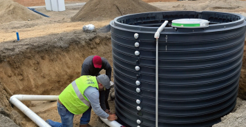 4. Монтаж колодцев: устанавливаются смотровые колодцы в углах системы и главный колодец для сбора воды.